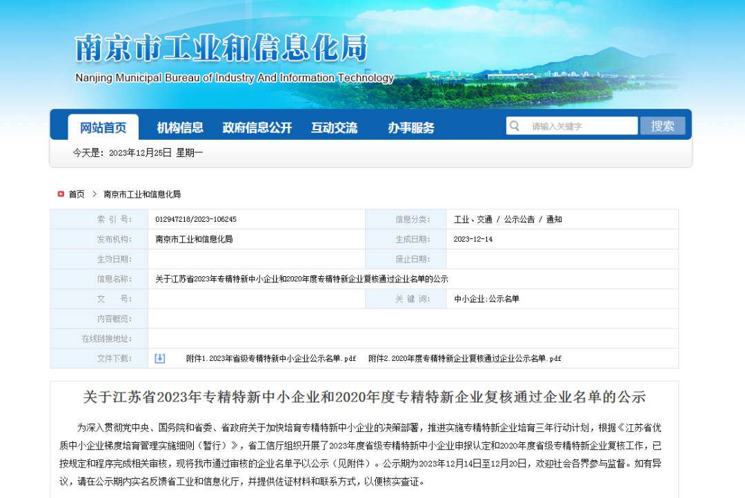 近日,江苏省工业和信息化厅公布了2023年度省专精特新中小企业认定通过名单。燃点医药凭借优秀的创新能力、突出的研发实力,荣获“江苏省专精特新中小企业”称号。